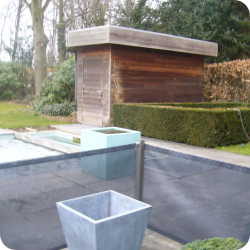 Bij deze installatie is het terras afgeschermd. Hierdoor kunnen kleine kinderen het zwembad niet meer direct bereiken.